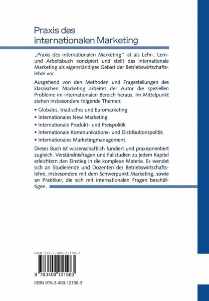 Dieses Lehr- und Arbeitsbuch stellt anhand von zahlreichen aktuellen Fallbeispielen das internationale Marketing als eigenständiges, komplexes Fachgebiet vor.