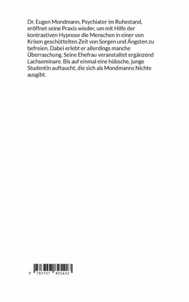 Dr. Eugen Mondmann, Psychiater im Ruhestand, eröffnet seine Praxis wieder, um mit Hilfe der kontrastiven Hypnose die Menschen in einer von Krisen geschüttelten Zeit von Sorgen und Ängsten zu befreien. Dabei erlebt er allerdings manche Überraschung. Seine Ehefrau veranstaltet ergänzend Lachseminare. Bis auf einmal eine hübsche, junge Studentin auftaucht, die sich als Mondmanns Nichte ausgibt.