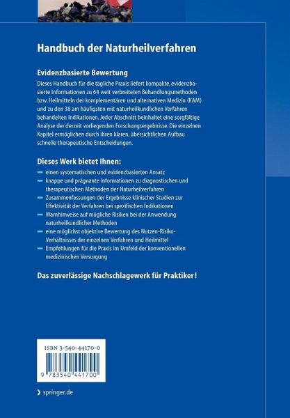 Alternative Therapieverfahren sind gefragt. Doch was hilft wirklich und was schadet eher? Die 64 wichtigsten Diagnose- und Therapieverfahren wurden von den Herausgebern mit evidenzbasierten Methoden einem kritischen Test unterzogen. Als Ergebnis liegt das erste Buch vor, das mit Studien belegte Empfehlungen für den Einsatz von Naturheilverfahren in Zusammenarbeit mit der schulmedizinischen Praxis gibt. Die stringente Gliederung jedes Kapitels hilft Arzt wie Patient schnell die gesuchte Information zu einem Arzneimittel, einer Heilmethode oder zu einer Krankheit zu finden. Ein unerlässliches Buch für alle Ärzte, Studenten, Apotheker und Patienten, die sich für Naturheilverfahren und Komplementärmedizin interessieren.
