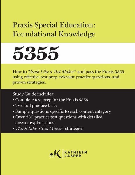 Praxis Special Education: Foundational Knowledge 5355 - How to Think Like a Test Maker® By Kathleen Jasper, Ed.D. Pass the Praxis 5355 exam with confidence using this comprehensive and fully aligned study guide by Kathleen Jasper, Ed.D. This resource is designed for educators preparing for the Praxis Special Education: Foundational Knowledge (5355) exam and provides a clear, structured approach to mastering all key content areas. With detailed explanations, practice questions, and powerful strategies, this guide helps you build the knowledge and test-taking skills necessary to earn your special education certification. Content Areas Covered: I. Human Development and Individual Learning Differences II. Effective Planning and Instruction and Productive Learning Environments III. Assessment IV. Professional Learning, Practice, and Collaboration What's inside: ¿ Over 280 practice test questions with detailed answer explanations ¿ Two full-length Praxis 5355 practice tests to assess your readiness ¿ Sample questions and mini-quizzes for each content category ¿ A Good Words List to help you eliminate incorrect answer choices ¿ Proven Think Like a Test Maker® strategies to master difficult questions Whether you're entering the field of special education or adding credentials to your teaching license, this guide will prepare you for success on the Praxis 5355. Join over 80,000 educators who trust Kathleen Jasper's study materials to pass their certification exams and launch meaningful careers in education.