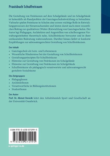 Die Gestaltung von Freiräumen auf dem Schulgelände und im Schulgebäude ist keinesfalls als Randproblem der Ganztagsschulentwicklung zu betrachten. Vielmehr spielen Freiräume in Schulen eine extrem wichtige Rolle in Entwicklungsprozessen der Heranwachsenden und leisten damit auch einen wesentlichen Beitrag zur qualitativen (Weiter-)Entwicklung von Ganztagsschulen. Der Autor legt Pädagogen, Architekten und Angestellten von schulbezogenen Verwaltungseinheiten theoretisch nahe, Schulfreiräume bewusster und in ihrer umfassenden Bedeutung wahrzunehmen. Darüber hinaus liefert er konkrete Empfehlungen zur adressatengerechten Gestaltung von Schulfreiräumen.