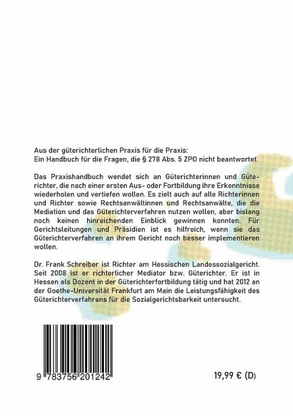 Aus der güterichterlichen Praxis für die Praxis: Ein Handbuch für die Fragen, die § 278 Abs. 5 ZPO nicht beantwortet.Das Praxishandbuch wendet sich an Güterichterinnen und Güterichter, die nach einer ersten Aus- oder Fortbildung ihre Erkenntnisse wiederholen und vertiefen wollen. Es zielt auch auf alle Richterinnen und Richter sowie Rechtsanwältinnen und Rechtsanwälte, die die Mediation und das Güterichterverfahren nutzen wollen, aber bislang noch keinen hinreichenden Einblick gewinnen konnten. Für Gerichtsleitungen und Präsidien ist es hilfreich, wenn sie das Güterichterverfahren an ihrem Gericht noch besser implementieren wollen.