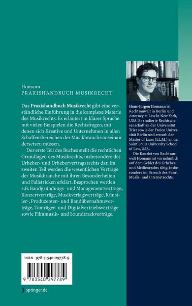 Das Praxishandbuch Musikrecht gibt eine verständliche Einführung in die komplexe Materie des Musikrechts. Es erläutert in klarer Sprache mit vielen Beispielen die Rechtsfragen, mit denen sich Kreative und Unternehmen in allen Schaffensbereichen der Musikbranche auseinandersetzen müssen.