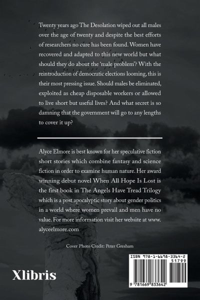 Twenty years ago The Desolation wiped out all males over the age of twenty and despite the best efforts of researchers no cure has been found. Women have recovered and adapted to this new world but what should they do about the 'male problem'? With the reintroduction of democratic elections looming, this is their most pressing issue. Should males be eliminated, exploited as cheap disposable workers or allowed to live short but useful lives? And what secret is so damning that the government will go to any lengths to cover it up?