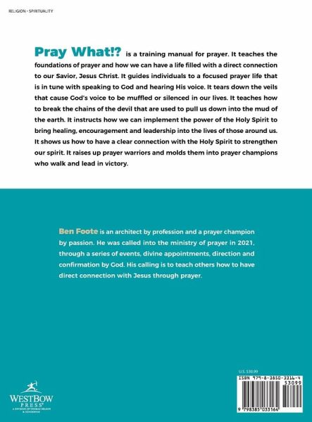 Pray What!? is a training manual for prayer. It teaches the foundations of prayer and how we can have a life filled with a direct connection to our Savior, Jesus Christ. It guides individuals to a focused prayer life that is in tune with speaking to God and hearing His voice. It tears down the veils that cause God's voice to be muffled or silenced in our lives. It teaches how to break the chains of the devil that are used to pull us down into the mud of the earth. It instructs how we can implement the power of the Holy Spirit to bring healing, encouragement and leadership into the lives of those around us. It shows us how to have a clear connection with the Holy Spirit to strengthen our spirit. It raises up prayer warriors and molds them into prayer champions who walk and lead in victory.