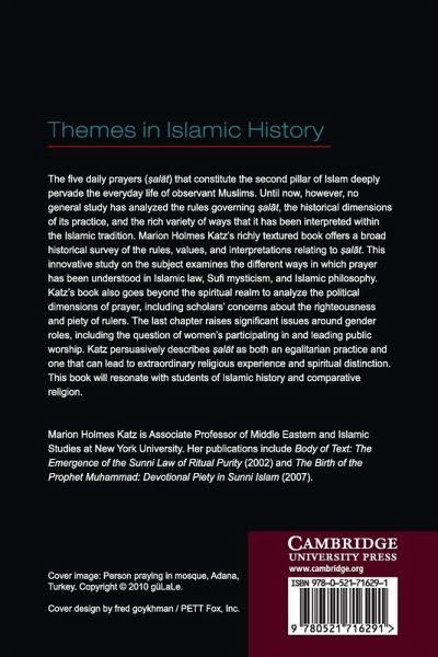 The five daily prayers (Salat) that constitute the second pillar of Islam deeply pervade the everyday life of observant Muslims. Until now, however, no general study has analyzed the rules governing Salat, the historical dimensions of its practice and the rich variety of ways that it has been interpreted within the Islamic tradition. Marion Holmes Katz's richly textured book offers a broad historical survey of the rules, values and interpretations relating to Salat. This innovative study on the subject examines the different ways in which prayer has been understood in Islamic law, Sufi mysticism and Islamic philosophy. Katz's book also goes beyond the spiritual realm to analyze the political dimensions of prayer, including scholars' concerns about the righteousness and piety of rulers. The last chapter raises significant issues around gender roles, including the question of women's participating in and leading public worship. This book will resonate with students of Islamic history and comparative religion.