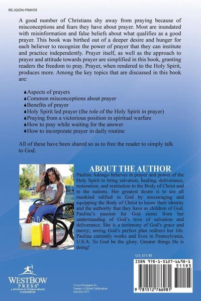 A good number of Christians shy away from praying because of misconceptions and fears they have about prayer. Most are inundated with misinformation and false beliefs about what qualifies as a good prayer. This book was birthed out of a deeper desire and hunger for each believer to recognize the power of prayer that they can institute and practice independently. Prayer itself, as well as the approach to prayer and attitude towards prayer, are simplified in this book, granting readers the freedom to pray. Prayer, when rendered to the Holy Spirit, produces more. Among the key topics that are discussed in this book are: —Aspects of prayers —Common misconceptions about prayer —Benefits of prayer —Holy Spirit led prayer (the role of the Holy Spirit in prayer) —Praying from a victorious position in spiritual warfare —How to pray while waiting for the answer —How to incorporate prayer in daily routine All of these have been shared so as to free the reader to simply talk to God.