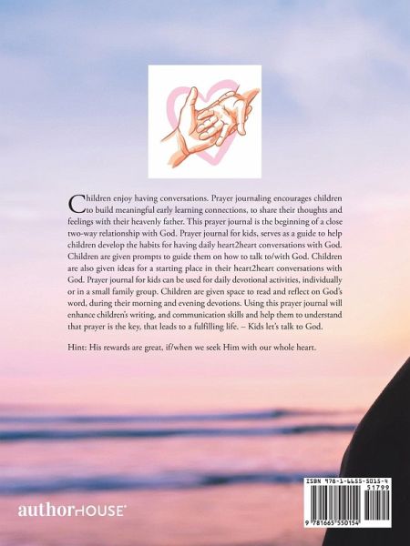Children enjoy having conversations. Prayer journaling encourages children to build meaningful early learning connections, to share their thoughts and feelings with their heavenly father. This prayer journal is the beginning of a close two-way relationship with God. Prayer journal for kids, serves as a guide to help children develop the habits for having daily heart2heart conversations with God. Children are given prompts to guide them on how to talk to/with God. Children are also given ideas for a starting place in their heart2heart conversations with God. Prayer journal for kids can be used for daily devotional activities, individually or in a small family group. Children are given space to read and reflect on God's word, during their morning and evening devotions. Using this prayer journal will enhance children's writing, and communication skills and help them to understand that prayer is the key, that leads to a fulfilling life. - Kids let's talk to God. Hint: His rewards are great, if/when we seek Him with our whole heart.