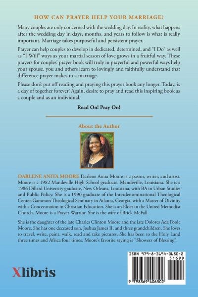 HOW CAN PRAYER HELP YOUR MARRIAGE? Many couples are only concerned with the wedding day. In reality, what happens after the wedding day in days, months, and years to follow is what is really important. Marriage takes purposeful and persistent prayer. Prayer can help couples to develop in dedicated, determined, and "I Do" as well as "I Will" ways as your martial season of love grows in a fruitful way. These prayers for couples' prayer book will truly in prayerful and powerful ways help your spouse, you and others learn to lovingly and faithfully understand that difference prayer makes in a marriage. Please don't put off reading and praying this prayer book any longer. Today, is a day of together forever! Again, desire to pray and read this inspiring book as a couple and as an individual. Read On! Pray On!