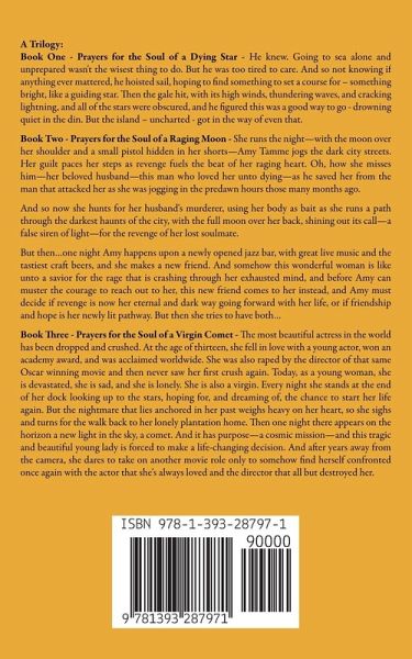 A Trilogy: Book One - Prayers for the Soul of a Dying Star - He knew. Going to sea alone and unprepared wasn't the wisest thing to do. But he was too tired to care. And so not knowing if anything ever mattered, he hoisted sail, hoping to find something to set a course for - something bright, like a guiding star. Then the gale hit, with its high winds, thundering waves, and cracking lightning, and all of the stars were obscured, and he figured this was a good way to go - drowning quiet in the din. But the island - uncharted - got in the way of even that. Book Two - Prayers for the Soul of a Raging Moon - She runs the night-with the moon over her shoulder and a small pistol hidden in her shorts-Amy Tamme jogs the dark city streets. Her guilt paces her steps as revenge fuels the beat of her raging heart. Oh, how she misses him-her beloved husband-this man who loved her unto dying-as he saved her from the man that attacked her as she was jogging in the predawn hours those many months ago. And so now she hunts for her husband's murderer, using her body as bait as she runs a path through the darkest haunts of the city, with the full moon over her back, shining out its call-a false siren of light-for the revenge of her lost soulmate. But then...one night Amy happens upon a newly opened jazz bar, with great live music and the tastiest craft beers, and she makes a new friend. And somehow this wonderful woman is like unto a savior for the rage that is crashing through her exhausted mind, and before Amy can muster the courage to reach out to her, this new friend comes to her instead, and Amy must decide if revenge is now her eternal and dark way going forward with her life, or if friendship and hope is her newly lit pathway. But then she tries to have both... Book Three - Prayers for the Soul of a Virgin Comet The most beautiful actress in the world has been dropped and crushed. At the age of thirteen, she fell in love with a starring young actor, won an academy award, and was acclaimed worldwide. She was also raped by the director of that same Oscar winning movie and then never saw her first crush again. Today, as a young woman, she is devastated, she is sad, and she is lonely. She is also a virgin. Every night she stands at the end of her dock looking up to the stars, hoping for, and dreaming of, the chance to start her life again. But the nightmare that lies anchored in her past weighs heavy on her heart, so she sighs and turns for the walk back to her lonely plantation home. Then one night there appears on the horizon a new light in the sky, a comet. And it has purpose-a cosmic mission-and this tragic and beautiful young lady is forced to make a life-changing decision. And after years away from the camera, she dares to take on another movie role only to somehow find herself confronted once again with the actor that she's always loved and the director that all but destroyed her.