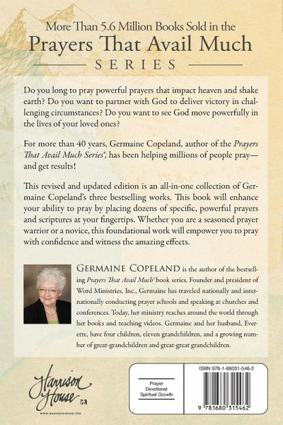 More Than 5.6 Million Books Sold in the Prayers That Avail Much Series Do you long to pray powerful prayers that impact heaven and shake earth? Do you want to partner with God to deliver victory in challenging circumstances? Do you want to see God move powerfully in the lives of your loved ones? For more than 40 years, Germaine Copeland, author of the Prayers That Avail Much Series®, has been helping millions of people pray—and get results! This revised and updated edition is an all-in-one collection of Germaine Copeland’s three bestselling works. This book will enhance your ability to pray by placing dozens of specific, powerful prayers and scriptures at your fingertips. Whether you are a seasoned prayer warrior or a novice, this foundational work will empower you to pray with confidence and witness the amazing effects.