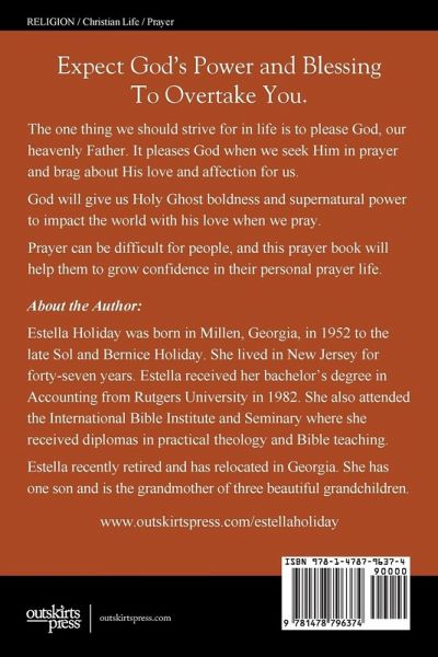 In 2015, I started praying scriptures directly from the Holy Bible and the Spirit of God would overtake me in my prayer closet. I wrote these prayers on paper, and the Holy Spirit instructed me to organize them and share them with others. My spiritual relationship with God through prayer has changed forever. I taste and see God's goodness nonstop. I believe this prayer book will be a blessing to all that pray in faith with expectation. God is always watching over his word to perform it.