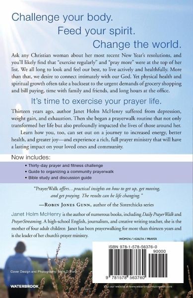 Challenge your body. Feed your spirit. Change the world. Ask any Christian woman about her most recent New Year’s resolutions, and you’ll likely find that “exercise regularly” and “pray more” were at the top of her list. We all long to look and feel our best, to live actively and healthfully. More than that, we desire to connect intimately with our God. Yet physical health and spiritual growth often take a backseat to the urgent demands of grocery shopping and bill paying, time with family and friends, and long hours at the office. It’s Time to Exercise Your Prayer Life. Three years ago, author Janet Holm McHenry suffered from depression, weight gain, and exhaustion. Then she began a prayerwalk routine that not only transformed her life but also profoundly impacted the lives of those around her. Learn how you, too, can set out on a journey to increased energy, better health, and greater joy—and experience a rich, full prayer ministry that will have a lasting impact on your loved ones and community—in PrayerWalk. “Prayerwalking makes so much sense, you’ll wonder why you haven’t been doing it all your life!” —Heather and David Kopp, coauthors of the Praying the Bible series “Honest, humorous, and insightful, PrayerWalk will encourage your heart.” —Linda Dillow, author of Intimate Issues