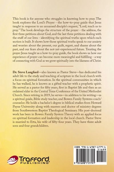 This book is for anyone who struggles in knowing how to pray. The book explores the Lord's Prayer - the how-to-pray guide that Jesus taught in response to an unnamed disciple's request, "Lord, teach us to pray." The book develops the structure of the prayer - the address, the first three petitions about God, and the last three petitions dealing with the stuff of our lives - identifying the spiritual truths upon which each section is built. It shows how those spiritual truths speak to our anxiety and worries about the present, our guilt, regret, and shame about the past, and our fears about the not-yet-experienced future. Treating the prayer Jesus taught as a how-to-pray guide, the book shows us how our experience of prayer can become more meaningful and fulfilling - a way of connecting with God as we grow spiritually into the likeness of Christ.