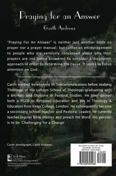 "Praying For An Answer" is neither just another book on prayer nor a prayer manual; but rather an encouragement to people who are seriously concerned about why their prayers are not being answered to consider a diagnostic approach in order to determine the cause. It seeks to focus attention on God.