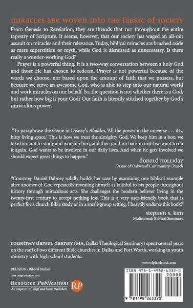 Miracles are woven into the fabric of Christianity. From Genesis to Revelation, they are threads that run throughout the entire tapestry of Scripture. It seems, however, that our society has waged an all-out assault on miracles and their relevance. Today, biblical miracles are brushed aside as mere superstition or myth, while God is dismissed as unnecessary. Is there really a wonder-working God? Prayer is a powerful thing. It is a two-way conversation between a holy God and those He has chosen to redeem. Prayer is not powerful because of the words we choose, nor based upon the amount of faith that we possess, but because we serve an awesome God who is able to step into our natural world and work miracles on our behalf. So, the question is not whether there is a God, but rather how big is your God? Our faith is literally stitched together by God's miraculous power.