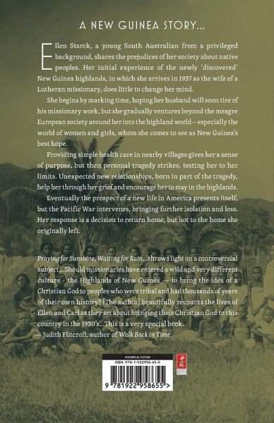 Ellen Starck, a young South Australian from a privileged background, shares the prejudices of her society about native peoples. Her initial experience of the newly 'discovered' New Guinea highlands, in which she arrives in 1937 as the wife of a Lutheran missionary, does little to change her mind. She begins by marking time, hoping her husband will soon tire of his missionary work, but she gradually ventures beyond the meagre European society around her into the highland world-especially the world of women and girls, whom she comes to see as New Guinea's best hope. Providing simple health care in nearby villages gives her a sense of purpose, but then personal tragedy strikes, testing her to her limits. Unexpected new relationships, born in part of the tragedy, help her through her grief and encourage her to stay in the highlands. Eventually the prospect of a new life in America presents itself, but the Pacific War intervenes, bringing further isolation and loss. Her response is a decision to return home, but not to the home she originally left.