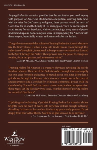 Praying Psalms for America provides just the inspiration you need to pray with purpose for America's life, liberties, and justice. Weaving daily news with the cries for God's mercy and grace, these prayers reveal the heart of God's love for us and the beauty of His saving plan. You'll be encouraged to stand strong for our freedoms, while experiencing a deep sense of peace, understanding, and hope. Join your voice in praying daily for America with these prayers, beautifully written and patterned after the Psalms.