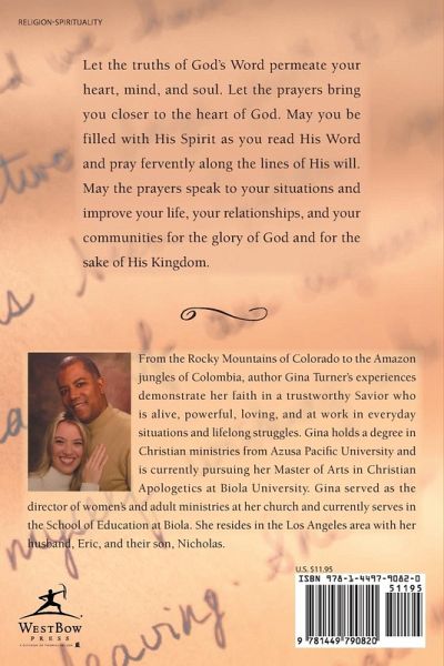 Let the truths of God's Word permeate your heart, mind, and soul. Let the prayers bring you closer to the heart of God. May you be filled with His Spirit as you read His Word and pray fervently along the lines of His will. May the prayers speak to your situations and improve your life, your relationships, and your communities for the glory of God and for the sake of His Kingdom.