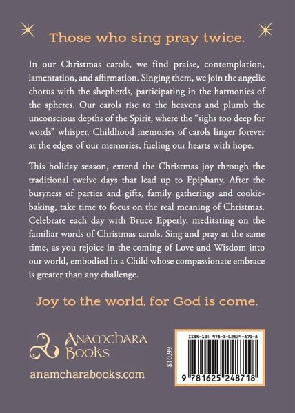 Those who sing pray twice. In our Christmas carols, we find praise, contemplation, lamentation, and affirmation. Singing them, we join the angelic chorus with the shepherds, participating in the harmonies of the spheres. Our carols rise to the heavens and plumb the unconscious depths of the Spirit, where the "sighs too deep for words" whisper. Childhood memories of carols linger forever at the edges of our memories, fueling our hearts with hope. This holiday season, extend the Christmas joy through the traditional twelve days that lead up to Epiphany. After the busyness of parties and gifts, family gatherings and cookie-baking, take time to focus on the real meaning of Christmas. Celebrate each day with Bruce Epperly, meditating on the familiar words of Christmas carols. Sing and pray at the same time, as you rejoice in the coming of Love and Wisdom into our world, embodied in a Child whose compassionate embrace is greater than any challenge. Joy to the world, for God is come.