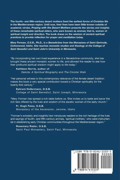 Fourth- and fifth-century desert mothers in the Mediterranean region, known as ammas (spiritual mothers), were the founders of Christian community in the early church. Praying with the Desert Mothers introduces the lives, sayings, and stories of these remarkable spiritual elders. It enriches readers' lives and compels them to return in meditation and prayer. For each topic a true story is drawn from a modern persona's experience of seeking God. This tapestry of stories of the desert ammas is woven together with theological insights, discussion of genres of literature, historical views on women, and reflective approaches to the wisdom tradition. Praying with the Desert Mothers combines scholarship and reflection for praying, meditating, and living the wisdom of spiritual practices today. Chapters are Introduction to the Desert Mothers, Ammas as Midwives of Wisdom, Ammas as Scripture Scholars, Heralds in the Desert, Desert as Idyllic Garden, The Peal of Great Price, Humility and the Manifestation of Thoughts, Penthos and Tears, Signs of Conversion, The Hidden Life, Prayer and Hospitality; and concludes with The Visitation and a complete bibliography on the desert ammas. Mary Forman, OSB, PhD, a Benedictine from the Monastery of Saint Gertrude, Cottonwood, Idaho, is assistant professor of theology at the School of Theology, Seminary and the College of Saint Benedict/Saint John's University, Collegeville, Minnesota.