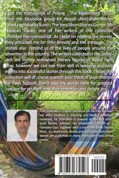 I got the manuscript of Prayog - The Experiment (1976) from the facebook group for Nepali short-short stories called Laghukatha Kuno - The Very Short Stories Corner. Mr Narayan Tiwari, one of hte writers of the collection provided the manuscript. As I kept on reading the stories, they attracted me for their brevity and the message. The stories also remind us of the lives of people around the seventies in the country. The writers collected in this collection are mostly renowned literary figures in Nepal right now, however we can see their skill in weaving ordinary events into successful stories through this book. I hope this collection will of course quench your thirst of your interest for flash fictions. Don't take my words here for granted. Just see for yourself how they entertain and delight you.