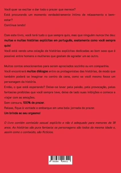 Você quer se excitar e dar todo o prazer que merece?Está procurando um momento verdadeiramente íntimo de relaxamento e bem-estar?Então continue lendo!Com este livro, você terá tudo o que sempre quis e que ninguém nunca lhe deu: muitas e muitas histórias explícitas em português, exatamente como você sempre quis!Você tem diante de si uma coleção de histórias explícitas dedicadas ao bom sexo que é possível entre homens e mulheres que gostam de agradar um ao outro. Muitos contos excitantes para experimentar sozinho ou acompanhado.Você encontrará muitos diálogos entre os protagonistas das histórias, de modo que também poderá se imaginar no centro da cena, como se você mesmo fosse um personagem da história.Então, o que está esperando? Deixe-se levar pela paixão, pela provocação, pelas fantasias proibidas que você sempre teve, deixe de lado suas inibições e comece a viajar com as emoções.Sem censura, 100% de prazer.Relaxe, fique à vontade e embarque em uma bela jornada de prazer.Um brinde ao seu orgasmo!