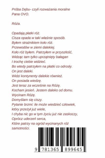 Próba D¿bu, z podtytu¿em: Rozmy¿lania moralne Pana OVO, autorstwa KONRAD STAWIARSKI. Motto: I z wiecznöci dzbanów nocy, przelewäy si¿ politycznie poprawnie brane dyplomacji miody. Poezje Autora dost¿pne w wersji papierowej w wydawnictwie LULU, lulu.com i w Amazon, amazon.com
