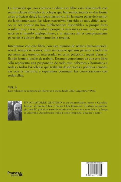 La intención que nos convoca a editar este libro está relacionada con reunir relatos múltiples de colegas que han tenido interés en dar forma a sus prácticas desde las ideas narrativas. En la mayor parte del territorio latinoamericano, las ideas narrativas han sido de muy difícil acceso, ya sea porque no hay publicaciones disponibles, o porque éstas resultan muy caras; también porque la narrativa es una práctica que nace en el mundo angloparlante, y ni siquiera ahí es completamente parte de la cultura dominante de la terapia. Intentamos con este libro, con esta reunión de relatos latinoamericanos de terapia narrativa, abrir un espacio que nos permita a todas las personas que estemos interesadas en estas prácticas, seguir desarrollando formas locales de trabajo. Estamos conscientes de que este libro sólo representa una proporción de todo esto, sabemos y honramos a todas y todos los colegas que trabajan desde éticas y políticas armónicas con la narrativa y esperamos continuar las conversaciones con todas ellas.