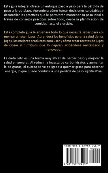 Esta guía integral ofrece un enfoque paso a paso para la pérdida de peso a largo plazo. Aprenderá cómo tomar decisiones saludables y desarrollar las prácticas que le permitirán mantener su peso ideal a través de consejos prácticos sobre todo, desde la planificación de comidas hasta el ejercicio. Esta completa guía le enseñará todo lo que necesita saber para comenzar a hacer jugos. Aprenderá los beneficios para la salud de los jugos, los mejores productos para usar y cómo crear recetas de jugos deliciosos y nutritivos que lo dejarán sintiéndose revitalizado y renovado. La dieta ceto es una forma muy eficaz de perder peso y mejorar la salud en general. Al reducir la ingesta de carbohidratos y aumentar la de grasas, el cuerpo se ve obligado a quemar grasa para obtener energía, lo que puede conducir a una pérdida de peso significativa.