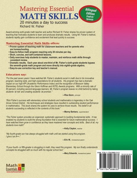 NEW! BILINGUAL EDITION - EACH LESSON IN ENGLISH AND SPANISH SIDE BY SIDE. THIS IS THE NEW IMPROVED, EXPANDED, 2ND EDITION. IT NOW CONTAINS EXTRA PRACTICE PROBLEMS FOR EACH TOPIC. THESE PROBLEMS WILL ENSURE MASTERY OF ALL TOPICS IN THE BOOK. THERE ARE HUNDREDS OF THIS PROBLEMS. Includes a video tutorial for each lesson. Used by hundreds of thousands of students each year. Lessons are presented in a format that everyone can easily understand. Each Lesson flows smoothly and logically to the next. Each lesson is short, concise, and to the point. Lots of examples with step-by-step solutions. Each lesson includes valuable Helpful Hints Review is built into each lesson. Students will retain what they have learned. Each lesson includes Problem Solving. This ensures that students will learn to apply their knowledge to real-life-situations. Excellent prep for SAT/PSAT