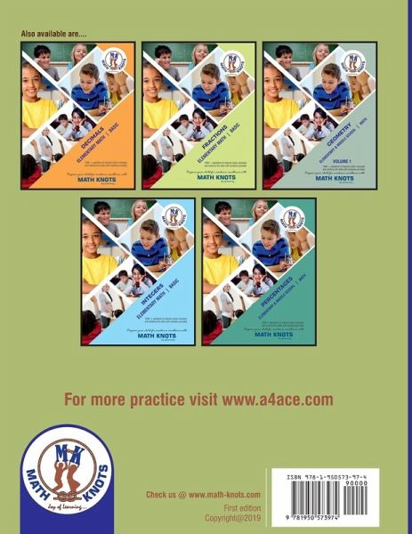 The Pre-Algebra practice sets are developed to help teachers and counselors make informed decisions about the initial placement of students in the secondary mathematics curriculum. Math-Knots Pre-Algebra Books, designed to harnesses a child's Pre-Algebra skills. Math-Knots Pre-Algebra Work Book Includes:Topics covering Pre-algebra skills extensively 1000 + questions Answer key is included. The content has been successfully used by many kids over the years to ace the test. Also available Pre-Algebra Work book - Vol 1 a4ace offers an online comprehensive test prep course for students . The most effective online test prep course for boosting your Pre-Algebra skillsPractice test series with 9 , 12 , 21 or 32 practice tests Various packages to choose Detailed step by step solutions Strategies to improve speed & accuracy on the test Students can practice as many times as they need Time based assessments simulating the real test. Many of our students got highest scores Visit https://a4ace.com Purchase ONLY our latest edition books. If you see any issues, please email us mathknots.help@gmail.com. For more practice tests visit www.a4ace.com