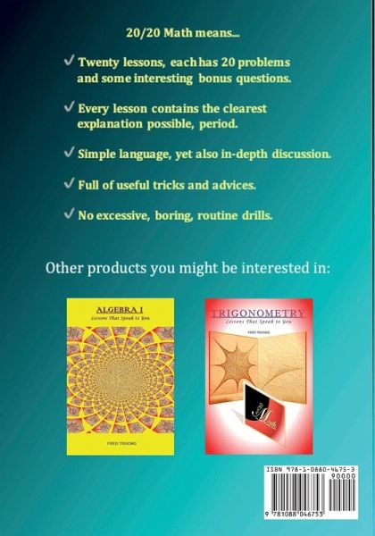 FREE PERSONAL ASSISTANT IS INCLUDED with your purchase. If you have questions with any problems in the book, please go to readablemath.wixsite.com/2020 and click "Ask Fred". A FREE WORKBOOK if you need extra practice. Please go to readablemath.wixsite.com/2020 to request a copy. PERFECT MATERIALS to supplement your child's learning, especially if he/she is in INTEGRATED MATH. EXCEPTIONAL for inspiring your child to GET AHEAD and EXCEL in math. GREAT for helping students who struggled in math CLARIFY and REVIEW CONCEPTS. Contains ESSENTIAL lessons for building a STRONG FOUNDATION in math, so your child can succeed in PRE-ALGEBRA, ALGEBRA I, ALGEBRA II, PRE-CALCULUS/TRIGONOMETRY, CALCULUS and BEYOND. For a fraction of the price, your child is guaranteed to learn more from this book than a traditional textbook, as it is full of COMPUTATIONAL TRICKS and IDEAS. It is a MUST-HAVE for all students who want to DEVELOP the CONFIDENCE and ability to perform mathematical tasks at a HIGH LEVEL. I have over 24 years of tutoring experience. I tutor students from 1st grade to college. My past students include those from MIT, U-Penn, UC Berkeley, and more. In addition to having a DOUBLE-MAJOR in Math and Computer Science as an undergrad, I have a MASTER degree from UCLA.