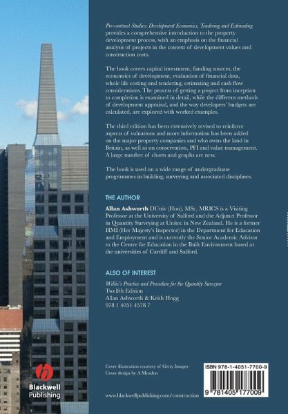 Pre-contract Studies: Development Economics, Tendering and Estimating provides a comprehensive introduction to the property development process, with an emphasis on the financial analysis of projects in the context of development values and construction costs. The book covers capital investment, funding sources, the economics of development, evaluation of financial data, whole life costing and tendering, estimating and cash flow considerations. The process of getting a project from inception to completion is examined in detail, while the different methods of development appraisal, and the way developers' budgets are calculated, are explored with worked examples. The third edition has been extensively revised to reinforce aspects of valuations and more information has been added on the major property companies and who owns the land in Britain, as well as on conservation, PFI and value management. A large number of charts and graphs are new. The book is used on a wide range of undergraduate programmes in building, surveying and associated disciplines.