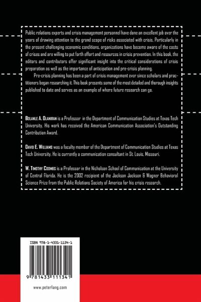 Public relations experts and crisis management personnel have done an excellent job over the years of drawing attention to the grand scope of risks associated with crisis. Particularly in the present challenging economic conditions, organizations have become aware of the costs of crises and are willing to put forth effort and resources in crisis prevention. In this book, the editors and contributors offer significant insight into the critical considerations of crisis preparation as well as the importance of anticipation and pre-crisis planning. Pre-crisis planning has been a part of crisis management ever since scholars and practitioners began researching it. This book presents some of the most detailed and thorough insights published to date and serves as an example of where future research can go.
