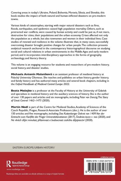 Various kinds of catastrophes, starting with major natural disasters such as fires, floods, earthquakes, and epidemics caused high population mortality. Others, such as protracted war conflicts, were caused by human activity and could be just as, if not more, destructive for cities, their populations and the urban economy. Crises affected not only the population as a whole, but also townsmen and women in their individual lives. Case studies of renewal and resilience in the volume illustrate that, in many cases, successfully overcoming disaster brought positive changes for urban people. The collection presents analytical research anchored in the contemporary historiographical discourse on studying social and cultural relations in urban environments in the Middle Ages and early modern period, and it incorporates interdisciplinary approaches in the forms of geography, archaeology, and literary theory.