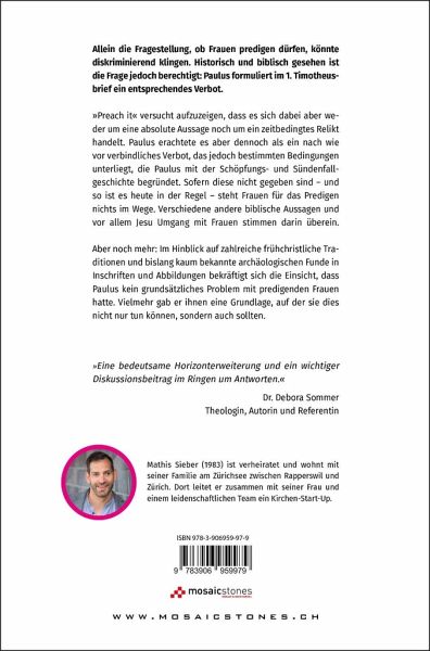 Allein die Fragestellung, ob Frauen predigen du¿rfen, könnte diskriminierend klingen. Historisch und biblisch gesehen ist die Frage jedoch berechtigt: Paulus formuliert im 1. Timotheus brief ein entsprechendes Verbot.