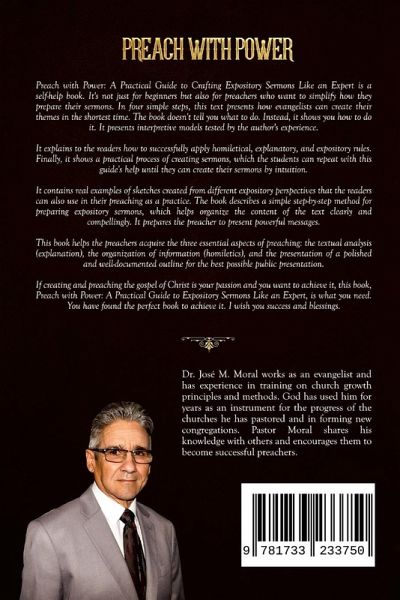 Preach With Power: A Practical Guide to Crafting Expository Sermons Like an Expert is a self-help book (In Spanish: https://www.amazon.com/dp/1074037065). It is not just for beginners but also some help for experienced preachers who want to simplify how they prepare their sermons. The book describes step by step, in four easy steps, how evangelists can create their sermons in the shortest amount of time. The book does not say what to do; it shows how to do it. It recommends homiletical and interpretive techniques that facilitate the construction of expository sermons simply and efficiently. The author presents didactic models based on his theoretical knowledge obtained after long years of study in Christian universities and verified by his experience gained through preaching developed over more than forty years of pastoral service and as an evangelist in different missionary fields. Also, this book explains to the reader how to successfully apply homiletical, exegetical, and expository rules. It shows in detail the procedures so that the reader learns the practical process of creating sermons. The author explains how to apply homiletical, exegetical, and expository rules in the simplest way possible. The goal is for you to see how the expository sermon is put together and then create your own with the help of this guide. That can serve as a model until you manage to create your themes simply by your intuition. The focus of this book is to show preachers how to create expository sermons. But it also shows how to prepare sermon series. Serial preaching can help you reach new levels of efficiency as a preacher. Because they help preachers and listeners grow at the same time. In addition, sermon series are the seed from which many Christian books sold in bookstores later germinate. Finally, some believe that serial preaching leads to the professionalization of the preaching ministry. In addition, this guide provides a template for the reader to organize their sermon outline when developing their topics. First, you must look at it and create one just like it. The rest is to place the different parts of the sketch in the right place. One of the main techniques for success is organization. So, this book shows you how to do it in each significant area of Christian preaching. If preaching the gospel of Christ is your passion and you want to achieve it this book. You have found the perfect book to achieve it. I wish you success and blessings.