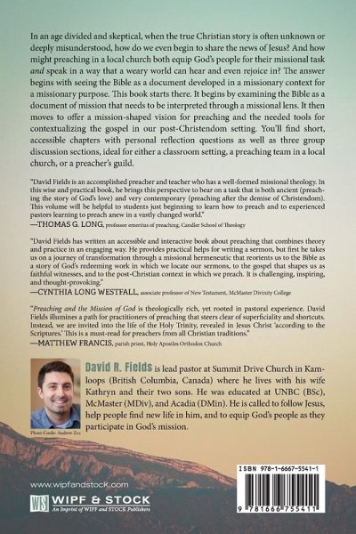In an age divided and skeptical, when the true Christian story is often unknown or deeply misunderstood, how do we even begin to share the news of Jesus? And how might preaching in a local church both equip God's people for their missional task and speak in a way that a weary world can hear and even rejoice in? The answer begins with seeing the Bible as a document developed in a missionary context for a missionary purpose. This book starts there. It begins by examining the Bible as a document of mission that needs to be interpreted through a missional lens. It then moves to offer a mission-shaped vision for preaching and the needed tools for contextualizing the gospel in our post-Christendom setting. You'll find short, accessible chapters with personal reflection questions as well as three group discussion sections, ideal for either a classroom setting, a preaching team in a local church, or a preacher's guild.