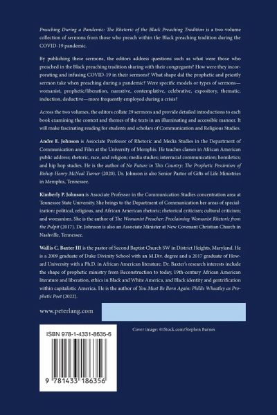 By publishing these sermons, the editors address questions such as what were those who preached in the Black preaching tradition sharing with their congregants? How were they incorporating and infusing COVID-19 in their sermons? What shape did the prophetic and priestly sermon take when preaching during a pandemic? Were specific models or types of sermons-womanist, prophetic/liberation, narrative, contemplative, celebrative, expository, thematic, induction, deductive-more frequently employed during a crisis?