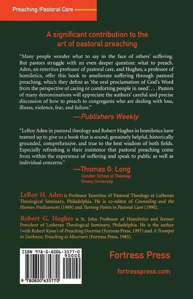 This is a book about human suffering and the church's efforts to minister to those who are suffering. It uses the resources of contemporary pastoral care to understand situations of suffering. For the most part, however, it focuses on pastoral preaching, that is, on the oral proclamation of God's Word from the perspective of caring for or comforting people in need. While many books have been published on suffering and on pastoral preaching, few have combined these into a single concern, as does this volume. The authors represent the respective disciplines involved: Aden, pastoral care, and Hughes, preaching. The book has been written from within the Pauline/Augustinian tradition as seen from a Lutheran perspective. The book begins with reflections on the reality of human suffering and an examination of several ways in which we try to make sense of suffering. It then focuses specifically on the believer's struggle with suffering, the church's attempt historically to address suffering, and the minister's pastoral relationship with troubled parishioners. After dealing with some of the practical differences between counseling and preaching, the book proposes a functional approach to pastoral preaching and describes the form of the pastoral sermon. Centering on five particular situations of suffering-loss, illness, violence, fear, and failure-the book suggests ways in which the pastor can preach to parishioners who are experiencing one or more of these traumas. Three sample sermons illustrate how to preach on God's gracious activity, while avoiding "psychologizing the text" and reducing the gospel to cheap therapy for individual problems.