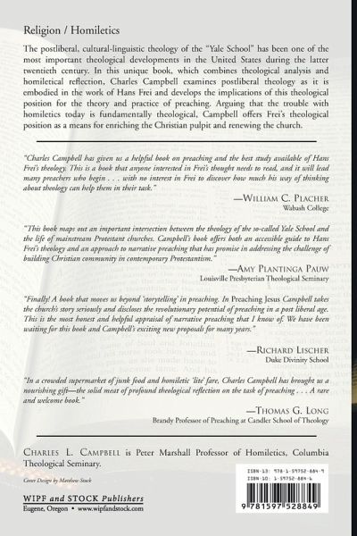 The post liberal, cultural-linguistic theology of the Yale School has been one of the most important theological developments in the United States during the latter twentieth century. In this unique book, which combines theological analysis and homiletical reflection,Charles Campbell examines post liberal theology as it is embodied in the work of Hans Frei and develops the implications of this theological position for the theory and practice of preaching. Arguing that the trouble with homiletics today is fundamentally theological, Campbell offers Frei's theological position as a means for enriching the Christian pulpit and renewing the church.