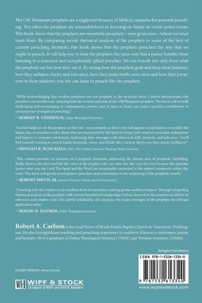 The Old Testament prophets are a neglected treasury of biblical examples for pastoral preaching. Too often the prophets are misunderstood as focusing on future or social justice issues. This book shows that the prophets are essentially preachers--very good ones--whom we must learn from. By comparing recent rhetorical analysis of the prophets to some of the best of current preaching literature, this book shows that the prophets preached the way that we ought to preach. It will help you to hear the prophets the same way that a pastor benefits from listening to a seasoned and exceptionally gifted preacher. We can benefit not only from what the prophets say but how they say it. By seeing how the prophets grab and keep their listeners, how they enhance clarity and relevancy, how they make truth come alive and how they persevere in their ministry, you too can learn to preach like the prophets.