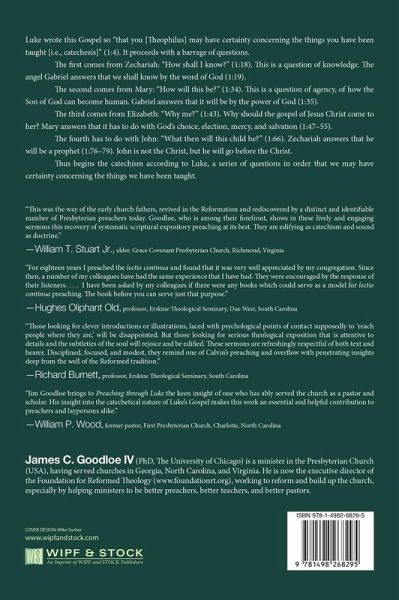 Luke wrote this Gospel so ""that you [Theophilus] may have certainty concerning the things you have been taught [i.e., catechesis]"" (1:4). It proceeds with a barrage of questions. The first comes from Zechariah: ""How shall I know?"" (1:18). This is a question of knowledge. The angel Gabriel answers that we shall know by the word of God (1:19). The second comes from Mary: ""How will this be?"" (1:34). This is a question of agency, of how the Son of God can become human. Gabriel answers that it will be by the power of God (1:35). The third comes from Elizabeth: ""Why me?"" (1:43). Why should the gospel of Jesus Christ come to her? Mary answers that it has to do with God's choice, election, mercy, and salvation (1:47-55). The fourth has to do with John: ""What then will this child be?"" (1:66). Zechariah answers that he will be a prophet (1:76-79). John is not the Christ, but he will go before the Christ. Thus begins the catechism according to Luke, a series of questions in order that we may have certainty concerning the things we have been taught.