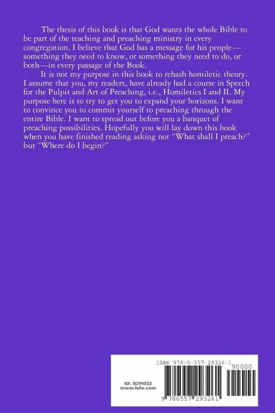 A practical discussion of strategies for preaching from the major types of biblical literature. The chapters are organized in three main divisions: introductory, expository and suggestive preaching units.