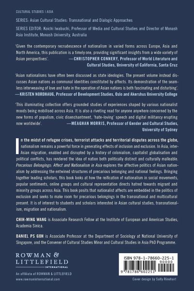 In the midst of refugee crises, terrorist attacks and territorial disputes across the globe, nationalism remains a powerful force in generating affects of inclusion and exclusion. In Asia, inter-Asian migration, enabled and disrupted by a history of colonialism, capitalist globalization and political conflicts, has rendered the idea of nation as both politically distinct and culturally malleable. Precarious Belongings: Affect and Nationalism in Asia explores the affective politics of Asian nationalism by addressing the entwined structures of precarious belonging and national feelings. Bringing together leading scholars it looks at how the reification of nationalism in social movements, popular sentiments, online groups, and cultural representation directs hatred towards migrant and minority groups across Asia. The book posits that nationalist affects are embedded in the politics of exclusion, and seeks to make room for precarious belongings in the transnational and multicultural present. It should be of interest to students and scholars interested in Asian Cultural Studies, transnationalism, migration and nationalism.