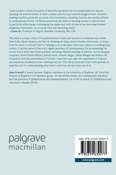This book is a major study of the presentation of work and workers in contemporary novels from India, North America and the UK. Drawing on lively recent theories about work, it shows how the novel is a crucial form for helping us to understand what work means in contemporary society. It tackles some of the most urgent questions of contemporary life by examining the stories about work that novels produce. Including detailed readings of authors such as Douglas Coupland, David Foster Wallace, Joshua Ferris, Arivand Adiga, Chetan Bhagat and Monica Ali it explores how the presentation of fictional characters lays open the experience of insecure and precarious existence in the contemporary era. This study illustrates that novels provide an essential tool for understanding what work is and how we feel when we do it.