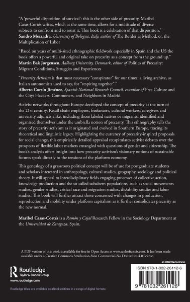 Based on personal involvement and a thorough engagement with their textual and graphic production, this ethnography tells the story of precarity activism as it was born and evolved in Southern Europe, tracing its theoretical legacy.