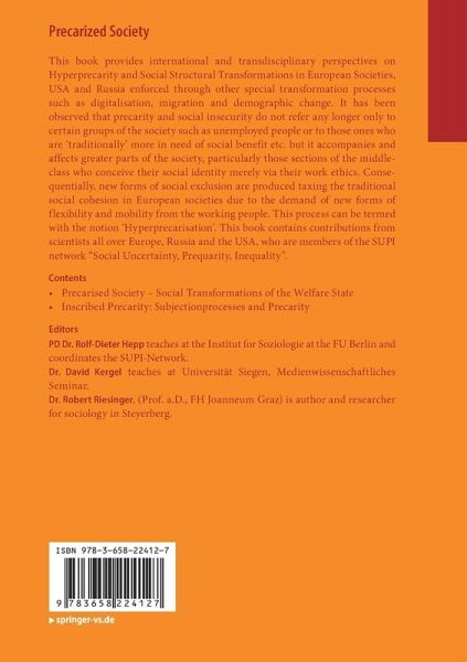This book provides international and transdisciplinary perspectives on Hyperprecarity and Social Structural Transformations in European Societies, USA and Russia enforced through other special transformation processes such as digitalisation, migration and demographic change. It has been observed that precarity and social insecurity do not refer any longer only to certain groups of the society such as unemployed people or to those ones who are 'traditionally' more in need of social benefit etc. but it accompanies and affects greater parts of the society, particularly those sections of the middleclass who conceive their social identity merely via their work ethics. Consequentially new forms of social exclusion are being producing taxing the traditional social cohesion in European societies due to the demand of new forms of flexibility and mobility from the working people. This process can be termed with the notion 'Hyperprecarisation'.