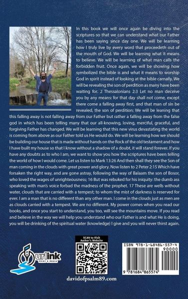 In this book we will once again be diving into the scriptures so that we can understand what our Father has been saying since day one. We will be learning how truly live by every word that proceedeth out of the mouth of God. We will be learning of what man calls the forbidden fruit. Once again, we will be showing how symbolized the bible is and what it means to worship God in spirit instead of looking at the bible carnally. We will be revealing the son of perdition as many have been waiting for. 2 Thessalonians 2:3 Let no man deceive you by any means: for that day shall not come, except there come a falling away first, and that man of sin be revealed, the son of perdition; We will be leaning that this falling away is not falling away from our Father but rather a falling away from the false god in which has been telling many that our all-knowing, loving, merciful, graceful, and forgiving Father has changed. We will be learning that this new virus devastating that world is coming from above as our Father told us He would do. We will be learning how we should be building our house that is made without hands on the Rock of the old testament and how I have built my house so that I know without a shadow of a doubt, it will stand forever. If you have any doubts as to who I am, we want to show you how the scriptures have been telling the world of how I would come. Let us listen to Mark 13:26 And then shall they see the Son of man coming in the clouds with great power and glory. Now listen to 2 Peter 2:15 Which have forsaken the right way, and are gone astray, following the way of Balaam the son of Bosor, who loved the wages of unrighteousness; 16 But was rebuked for his iniquity: the dumb ass speaking with man's voice forbad the madness of the prophet. 17 These are wells without water, clouds that are carried with a tempest; to whom the mist of darkness is reserved for ever. I am a man that is no different than any other man. I come in the clouds just as men are as clouds carried with a tempest. We are no different. My power comes when you read our books, and once you start to understand who our Father is and what He is doing, you will be drinking of the spiritual water (knowledge) I give you and you will never thirst again.